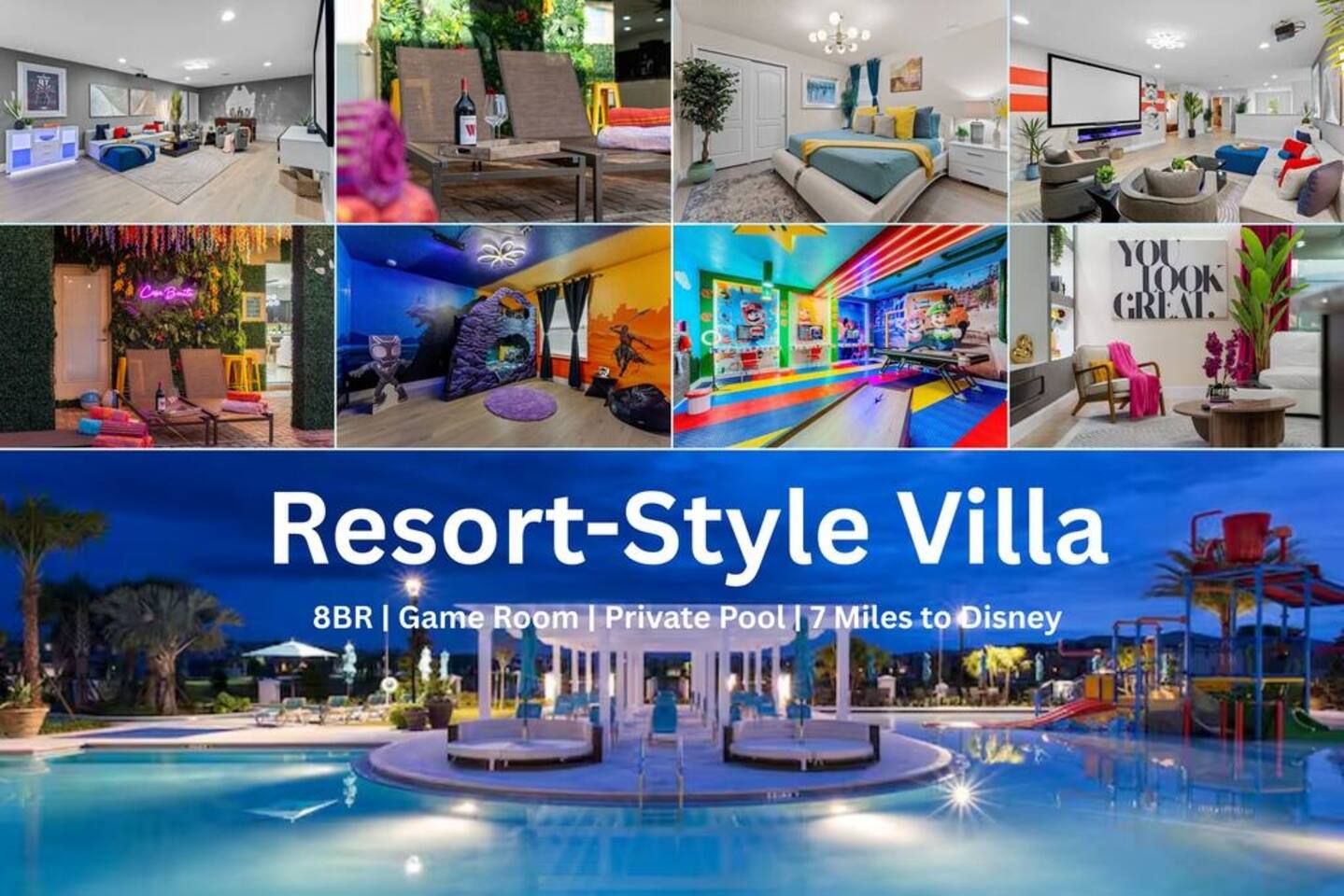 8 BD/6 BA | Magic Disney Villa w/ Game Room & Pool