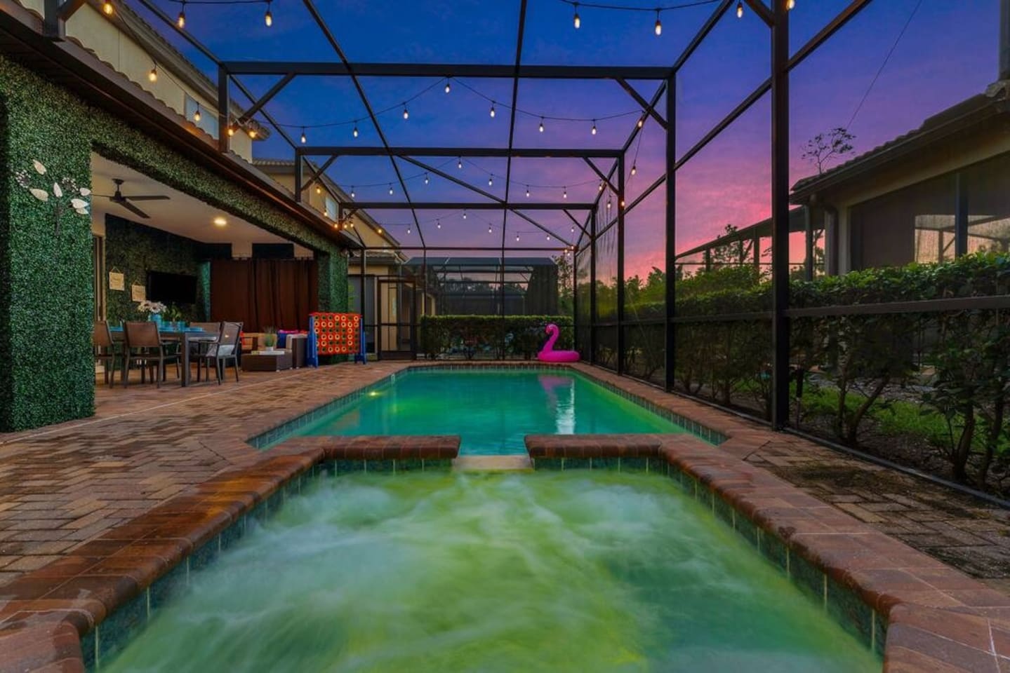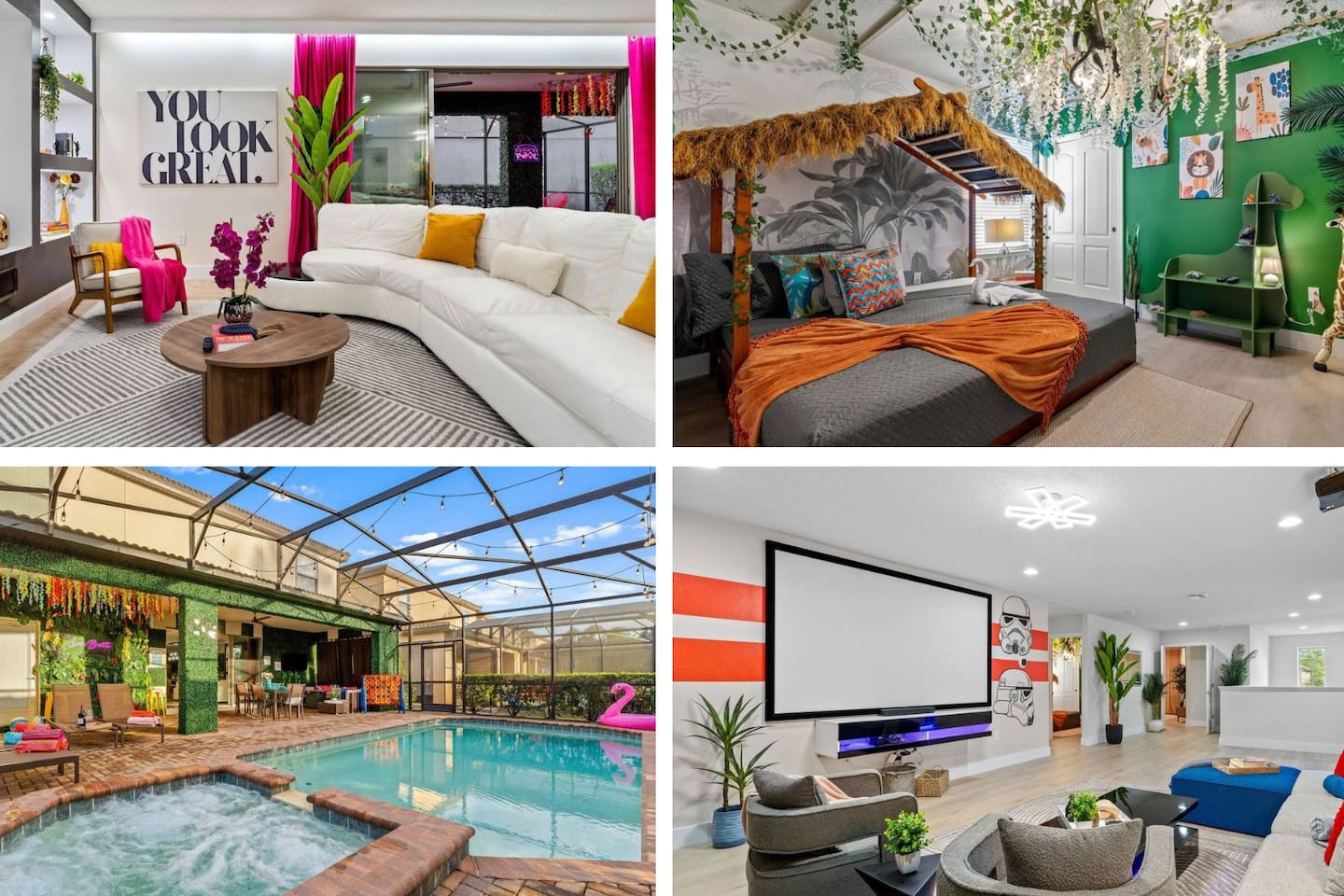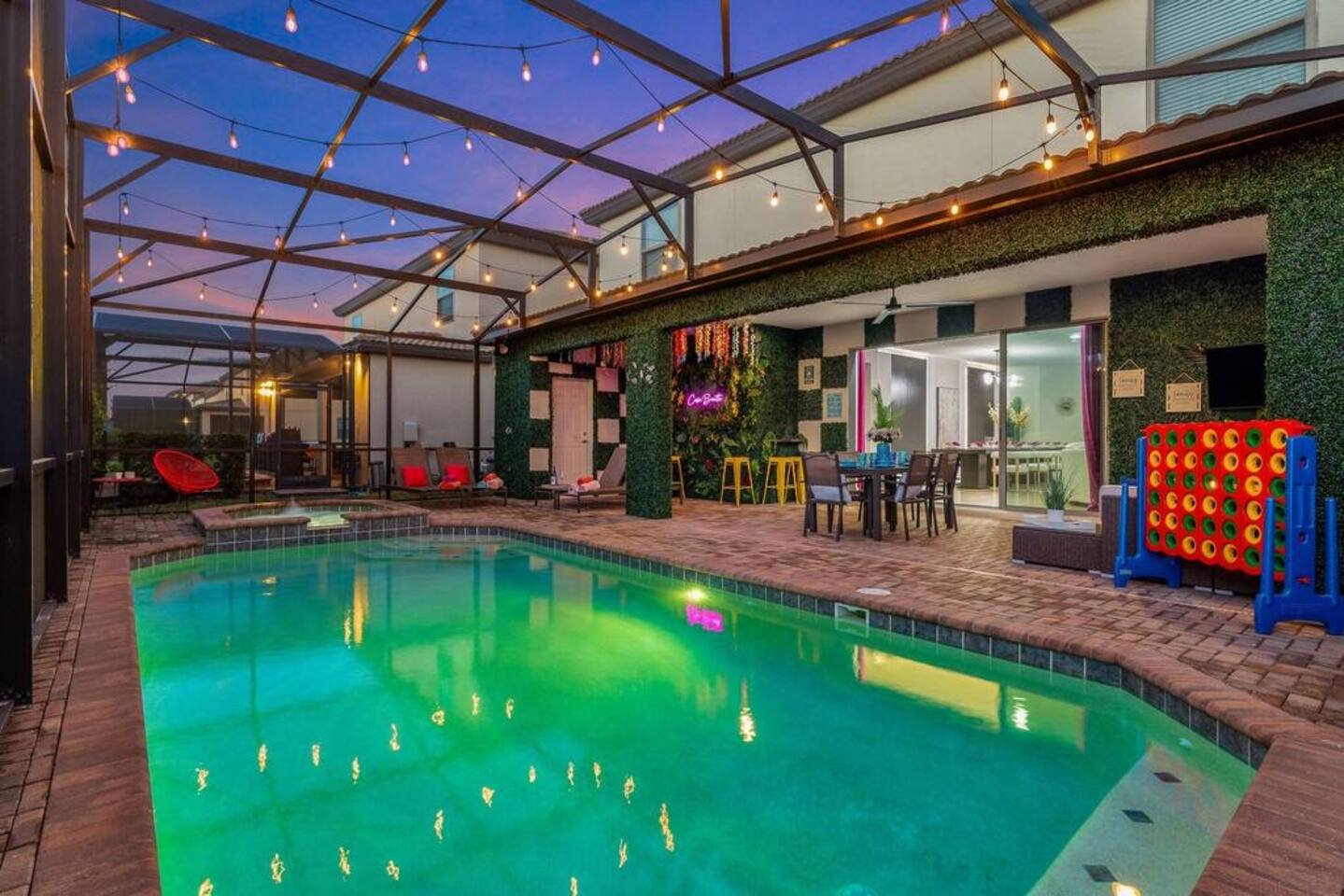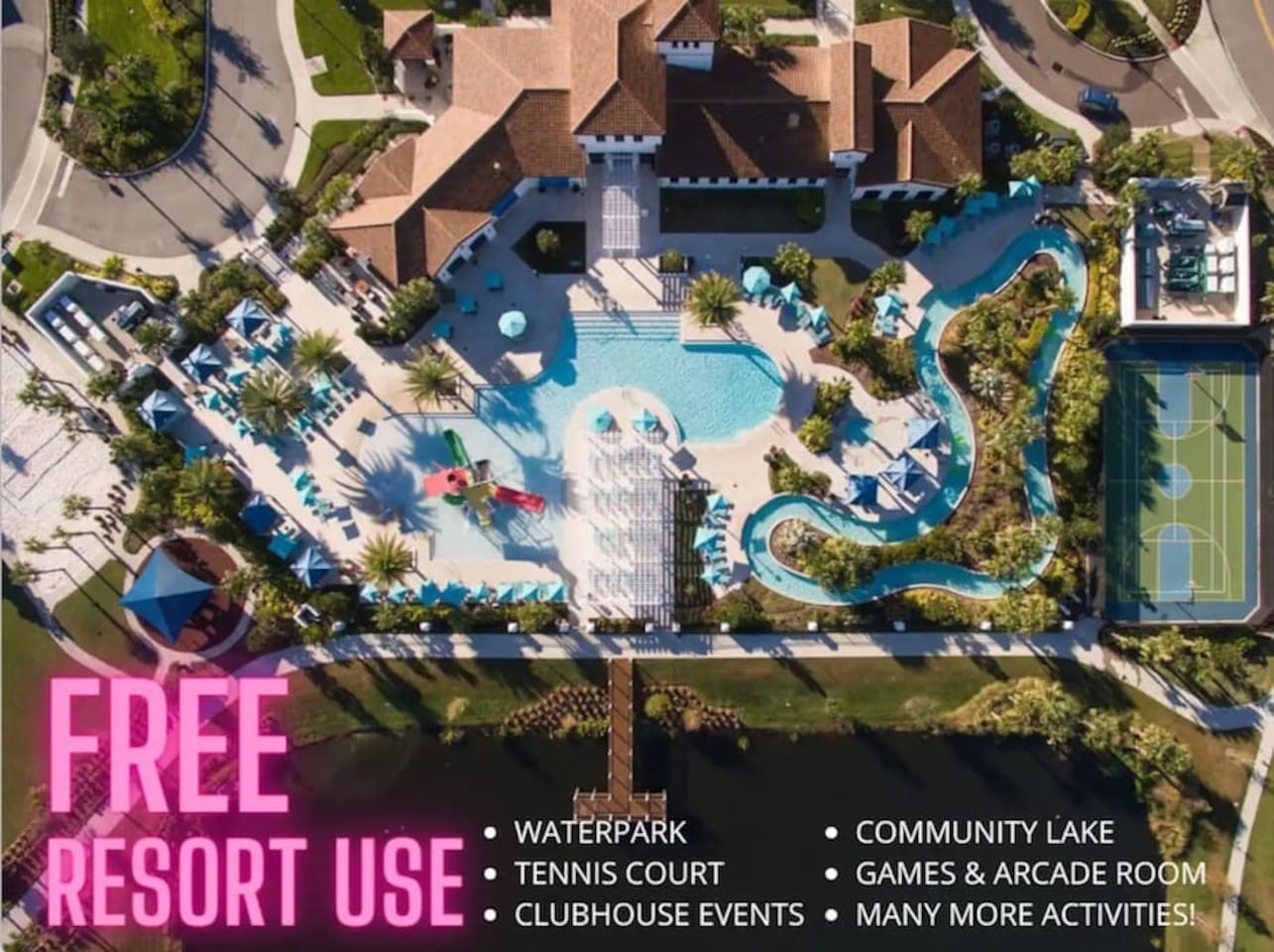 ✅ Sleeps 16+ with 11 Comfy Beds: Room for everyone! From king suites to fun bunk beds! This villa comfortably sleeps up to 16 guests (and even more if needed). Plenty of space to stretch out and relax! 🦸♂ Themed Bedrooms Kids & Adults Will Love: From Spider-Man and Black Panther to Jungle Safari, the kids’ rooms are packed with adventure and superhero vibes that make bedtime a blast. 🏊♂ Private Pool & Hot Tub (Heated Option Available): Cool off in your own private pool, or unwind in the hot tub after a busy day at the parks. Pool heating is available for extra comfort during cooler months. 🎥 Home Theatre, Arcade, & Kids’ Playroom: Movie nights in the home theatre are next level with big screens and comfy seating. The game room has arcade classics for all ages, and the kids’ playroom keeps the little ones entertained for hours. 🐾 Pet-Friendly! Bring One Furry Friend! Don’t leave your pup or cat behind! This villa welcomes one well-behaved pet (with a small fee). Family vacations just got even better! 🔐 Easy Self Check-In & High-Speed Wi-Fi: No keys, no fuss! Use your unique smart lock code to get in anytime. Plus, enjoy blazing fast Wi-Fi for streaming, working, or keeping the kids connected. 🏝 Resort Amenities at Your Fingertips: Step outside the villa and enjoy full access to Windsor at Westside Resort’s perks, including: - Clubhouse with fitness center - Scenic lake & tiki bar - Playgrounds & kids’ areas - Resort-style pool with cabanas
