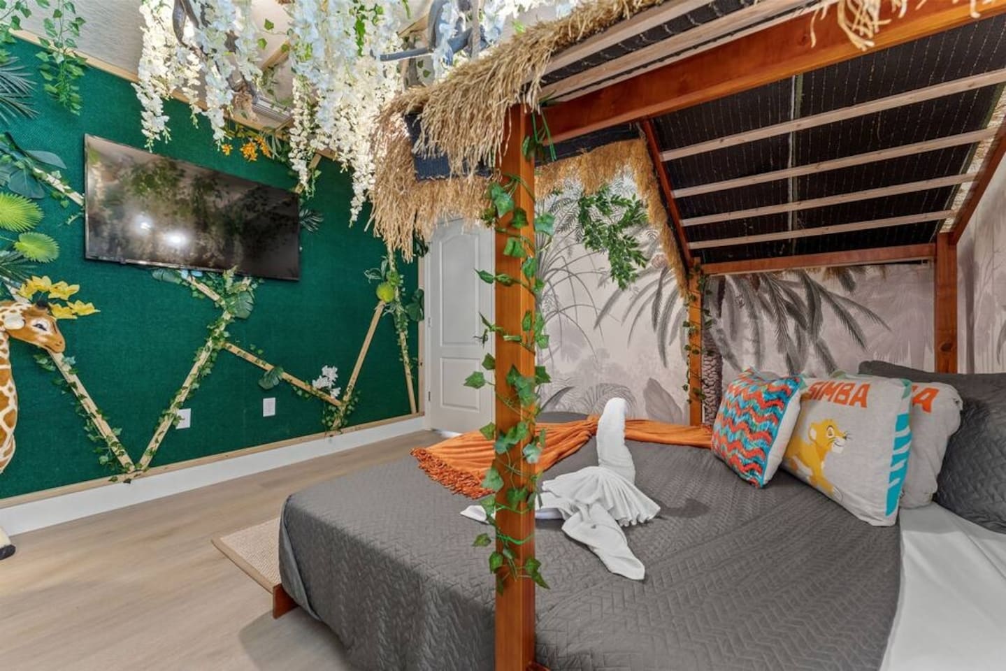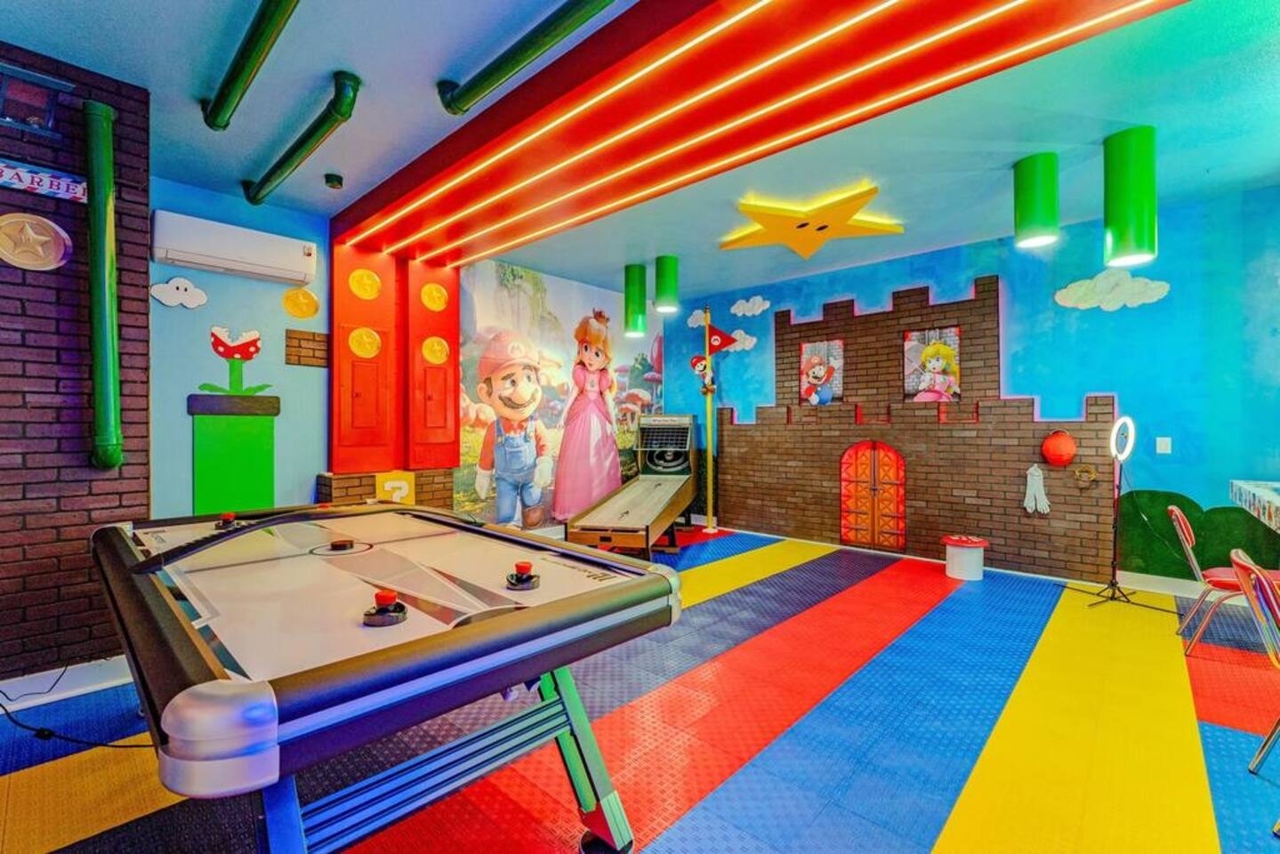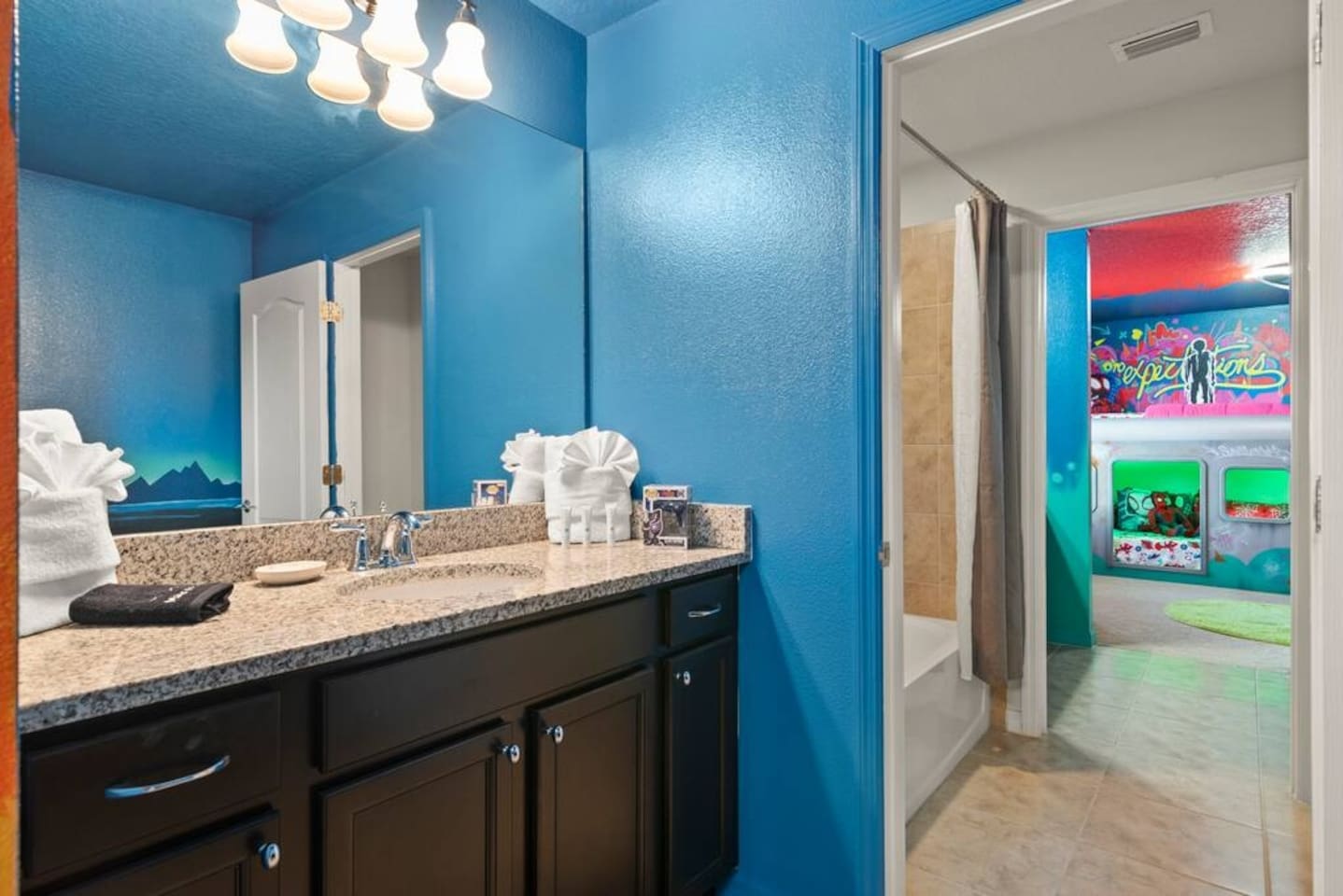 ✅ Sleeps 16+ with 11 Comfy Beds: Room for everyone! From king suites to fun bunk beds! This villa comfortably sleeps up to 16 guests (and even more if needed). Plenty of space to stretch out and relax! 🦸♂ Themed Bedrooms Kids & Adults Will Love: From Spider-Man and Black Panther to Jungle Safari, the kids’ rooms are packed with adventure and superhero vibes that make bedtime a blast. 🏊♂ Private Pool & Hot Tub (Heated Option Available): Cool off in your own private pool, or unwind in the hot tub after a busy day at the parks. Pool heating is available for extra comfort during cooler months. 🎥 Home Theatre, Arcade, & Kids’ Playroom: Movie nights in the home theatre are next level with big screens and comfy seating. The game room has arcade classics for all ages, and the kids’ playroom keeps the little ones entertained for hours. 🐾 Pet-Friendly! Bring One Furry Friend! Don’t leave your pup or cat behind! This villa welcomes one well-behaved pet (with a small fee). Family vacations just got even better! 🔐 Easy Self Check-In & High-Speed Wi-Fi: No keys, no fuss! Use your unique smart lock code to get in anytime. Plus, enjoy blazing fast Wi-Fi for streaming, working, or keeping the kids connected. 🏝 Resort Amenities at Your Fingertips: Step outside the villa and enjoy full access to Windsor at Westside Resort’s perks, including: - Clubhouse with fitness center - Scenic lake & tiki bar - Playgrounds & kids’ areas - Resort-style pool with cabanas