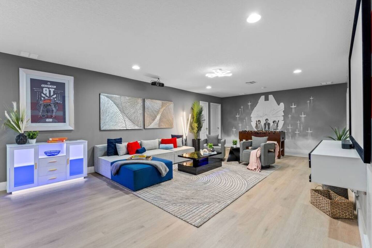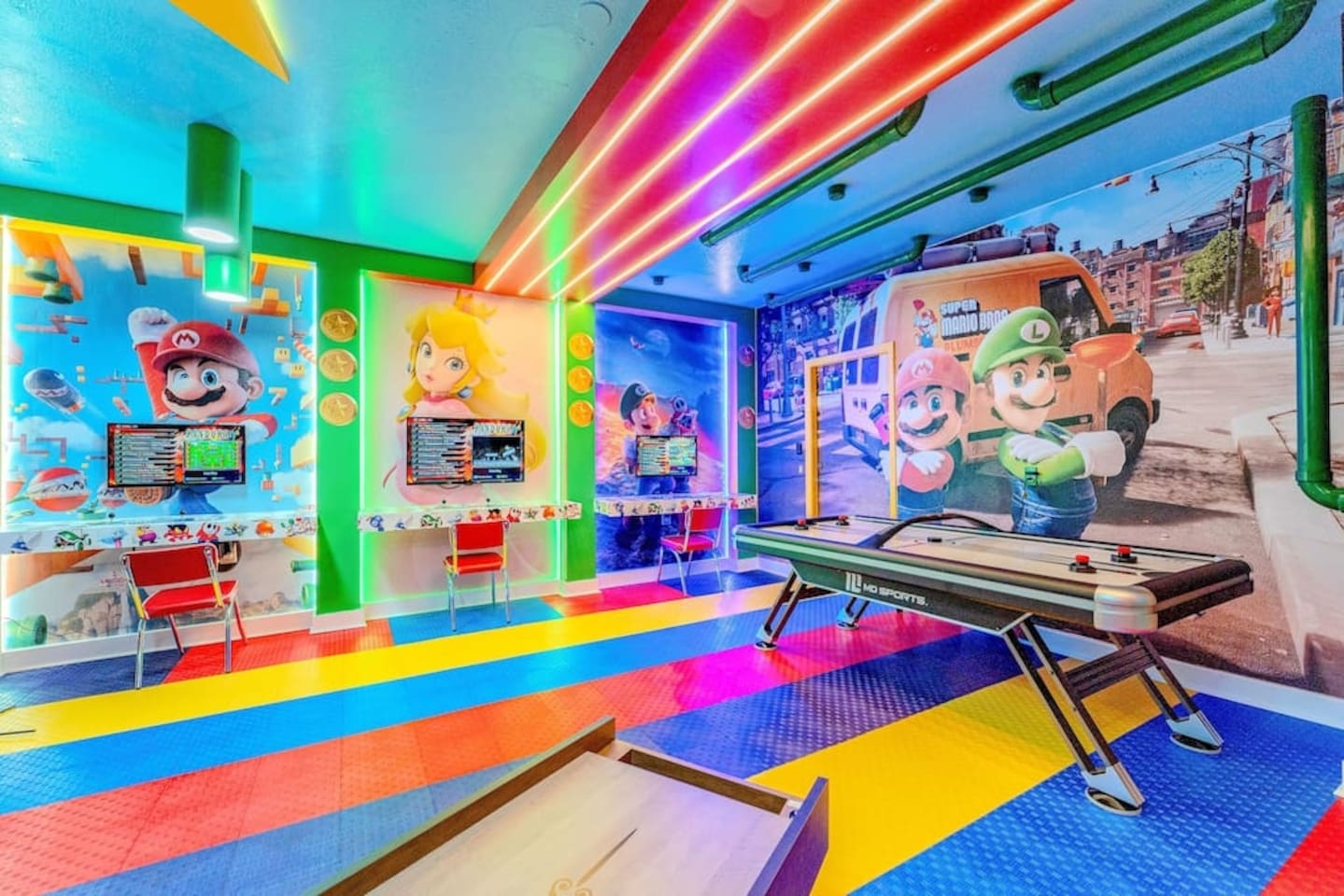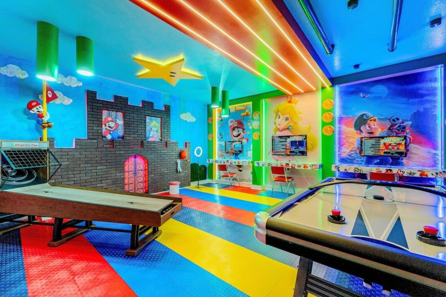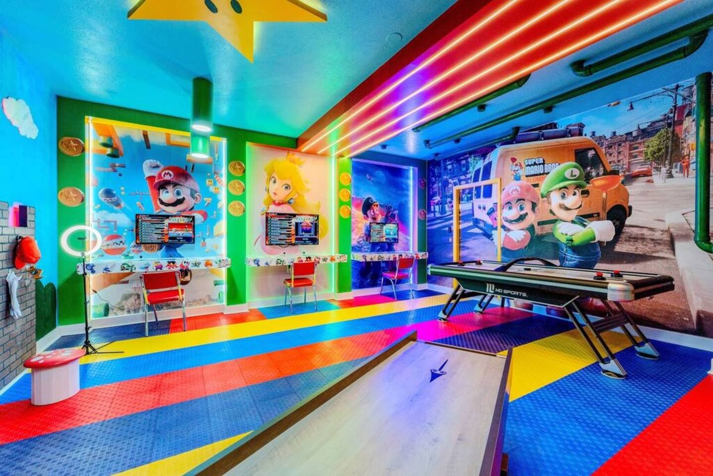 ✅ Sleeps 16+ with 11 Comfy Beds: Room for everyone! From king suites to fun bunk beds! This villa comfortably sleeps up to 16 guests (and even more if needed). Plenty of space to stretch out and relax! 🦸♂ Themed Bedrooms Kids & Adults Will Love: From Spider-Man and Black Panther to Jungle Safari, the kids’ rooms are packed with adventure and superhero vibes that make bedtime a blast. 🏊♂ Private Pool & Hot Tub (Heated Option Available): Cool off in your own private pool, or unwind in the hot tub after a busy day at the parks. Pool heating is available for extra comfort during cooler months. 🎥 Home Theatre, Arcade, & Kids’ Playroom: Movie nights in the home theatre are next level with big screens and comfy seating. The game room has arcade classics for all ages, and the kids’ playroom keeps the little ones entertained for hours. 🐾 Pet-Friendly! Bring One Furry Friend! Don’t leave your pup or cat behind! This villa welcomes one well-behaved pet (with a small fee). Family vacations just got even better! 🔐 Easy Self Check-In & High-Speed Wi-Fi: No keys, no fuss! Use your unique smart lock code to get in anytime. Plus, enjoy blazing fast Wi-Fi for streaming, working, or keeping the kids connected. 🏝 Resort Amenities at Your Fingertips: Step outside the villa and enjoy full access to Windsor at Westside Resort’s perks, including: - Clubhouse with fitness center - Scenic lake & tiki bar - Playgrounds & kids’ areas - Resort-style pool with cabanas